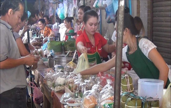 Khua Din Market is really famous for its street food alley. This alley with various Lao food and other types of dishes will be one of your favorite spots at Khua Din Market. When not feeling like cooking, people can go there to buy some fresh spring rolls, bamboo shoot soup, Lao stew and roasted chicken, pork as well as other types of dishes to take home for lunch or dinner.
